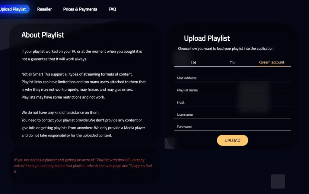 XUI IPTV Player er en relativt ny app, der er tilgængelig til flere enheder. Appen er nem at bruge – du udfylder blot dine loginoplysninger direkte i appen, uden at du behøver at uploade din playliste på deres hjemmeside, som med mange andre apps.